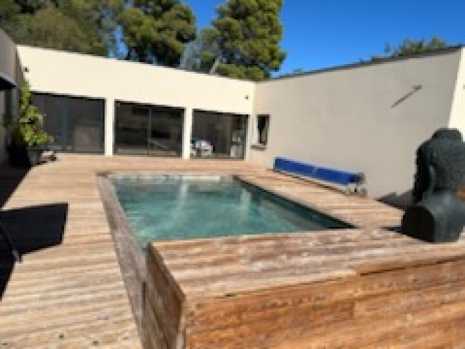 Dans la commune de Narbonne, hors lotissement, magnifique villa contemporaine de plain pied avec piscine sur t