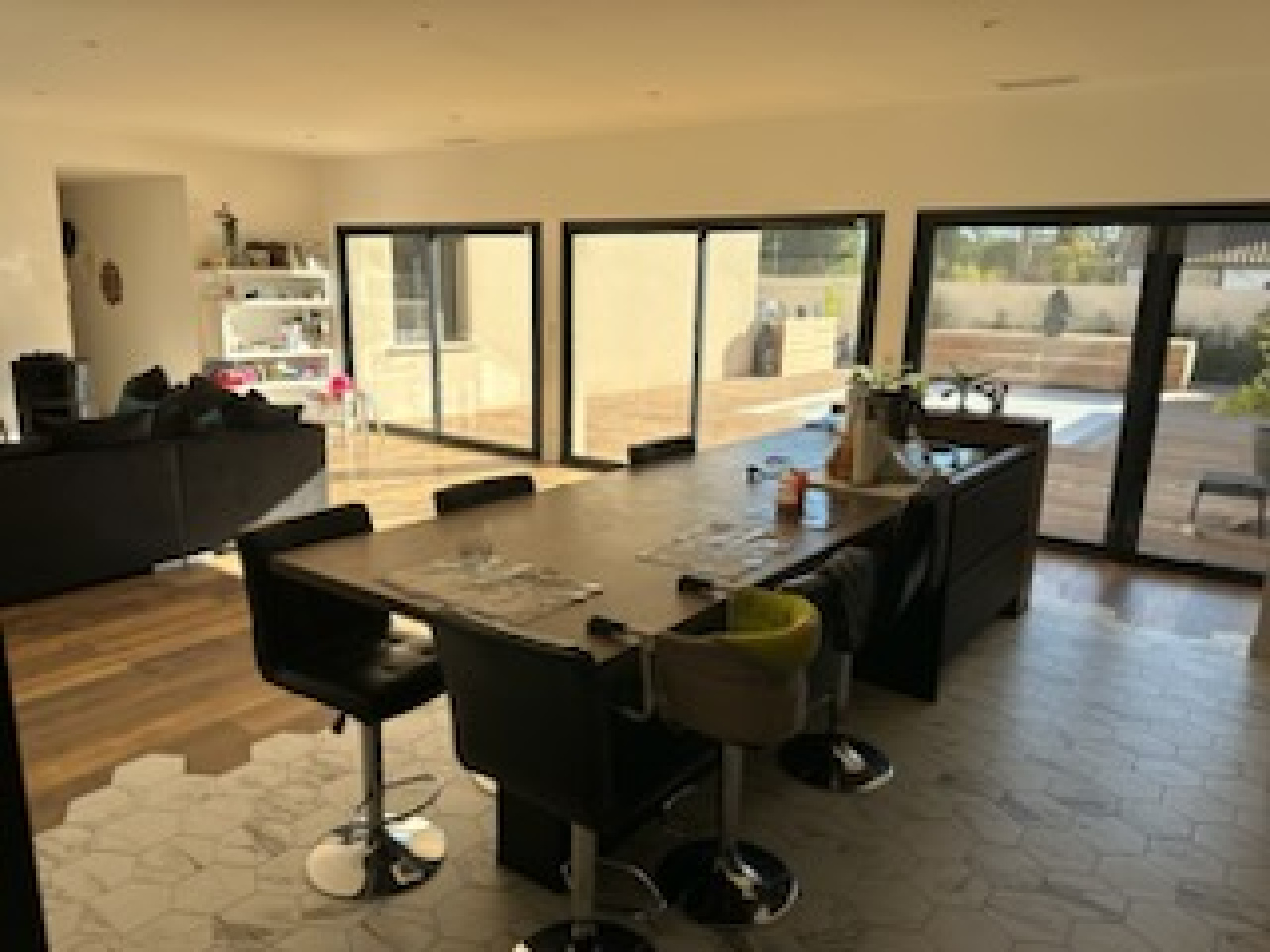 Narbonne (11100)Dans la commune de Narbonne, hors lotissement, magnifique villa contemporaine avec piscine sur terrain de 870M². Aspect important, l'habitation contient 2 salles de bain pour un quotidien plus confortable. La superficie intérieure habitable fait 153m². L'achèvement de la construction remonte à 2021. Tranquillité assurée grâce au double vitrage. Est conforme aux dernières normes de construction et d'isolation label BBC, toit terrasse. A l'extérieur, piscine de 7*3.5 de construction traditionnelle, pool house avec coin BBQ amménagé, terrain de pétanque et puit.
