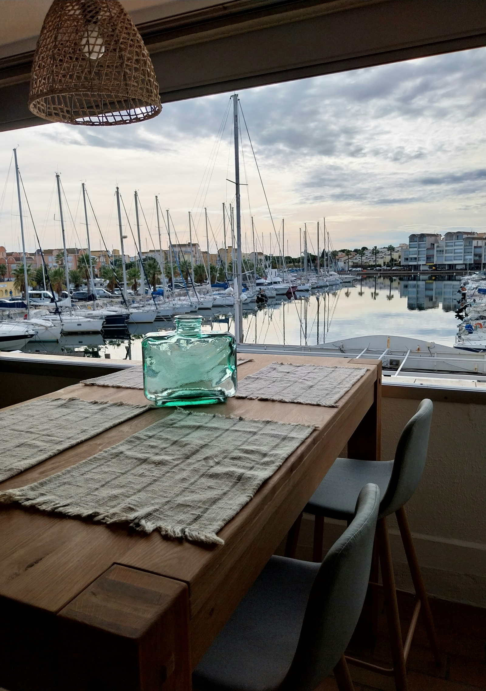 La vue directe sur le port et ses bâteaux offre un panorama vivant et authentique.