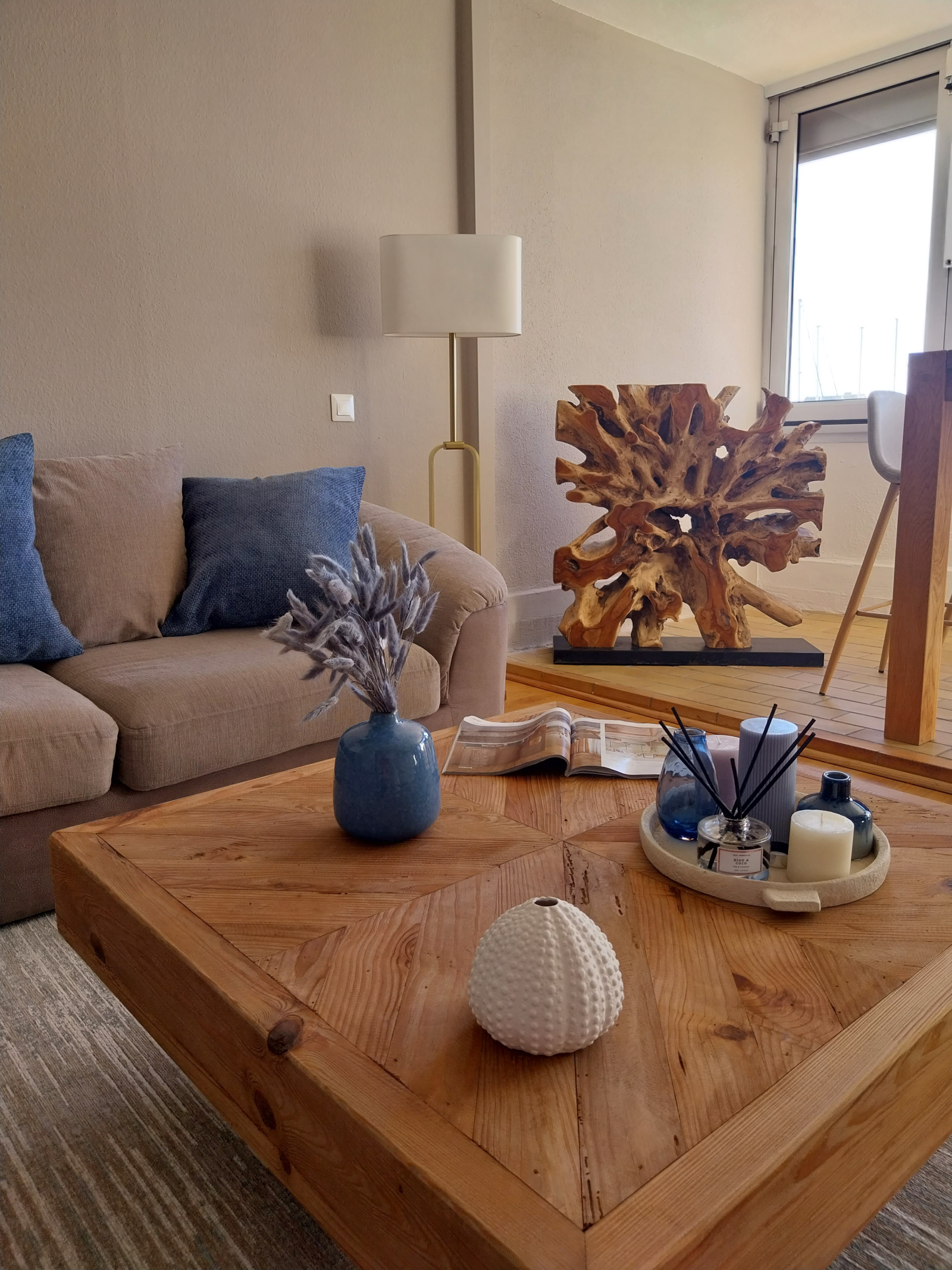 Dès l'entrée, les perspectives marines captent le regard à travers une large ouverture. Le couloir distribue harmonieusement une salle d'eau, les WC indépendant, un cellier, une vraie chambre avec placard invitant au calme.