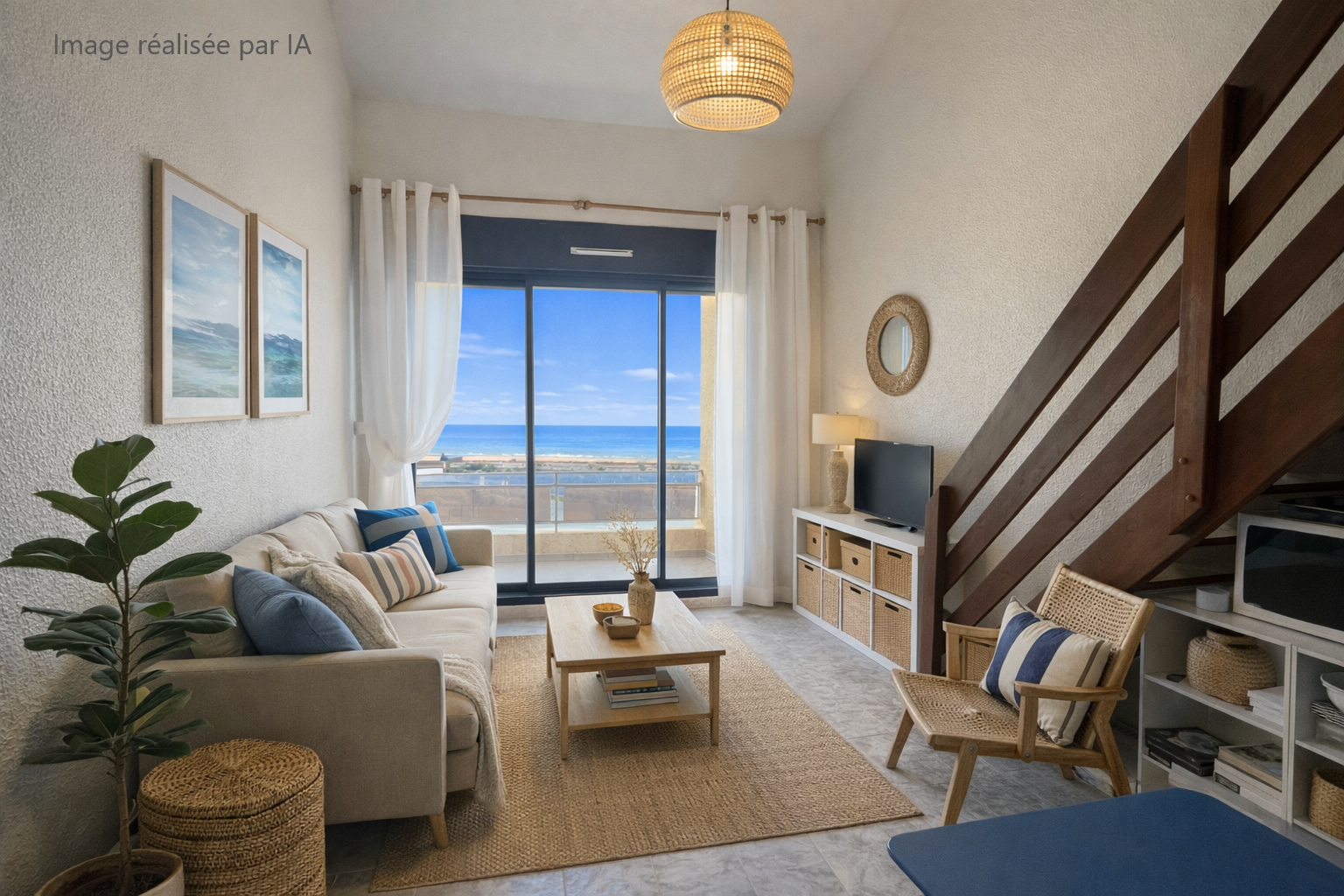 Composé d'une entrée, séjour tres lumineux avec une cuisine ouverte ainsi qu'une terrasse vue mer .