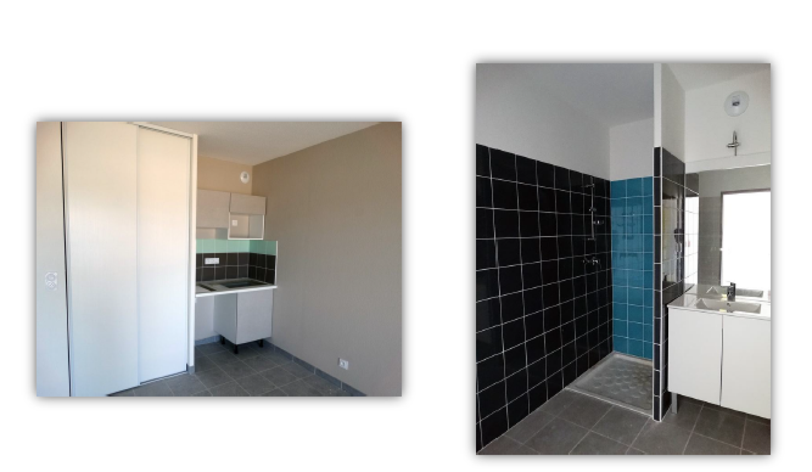 Narbonne (11100)NARBONNE : quartier CROIX SUD SPECIAL ETUDIANT dans résidence neuve studio de 26 m² terrasse de 6.25 m² parking aérien privatif, en 1er étage. Jolie salle d'eau aménagée, pièce principale avec kitchenette équipée (plaque, hotte, frigo top, meubles) accés terrasse . Commodités de la résidence : local vélo, lave-linge.
