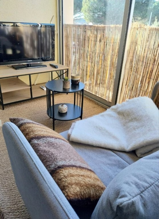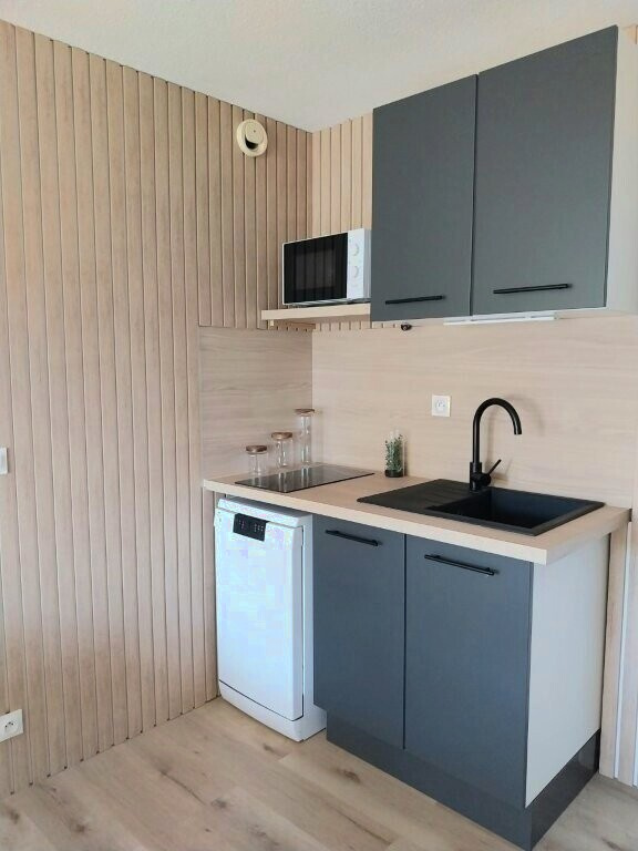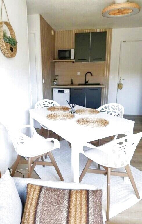 La pièce de vie offre une cuisine neuve semi-équipée fonctionnelle et moderne avec dans la continuté l'espace séjour-salon. La chambre propose un lit en 160 cm, un placard vient en complément.