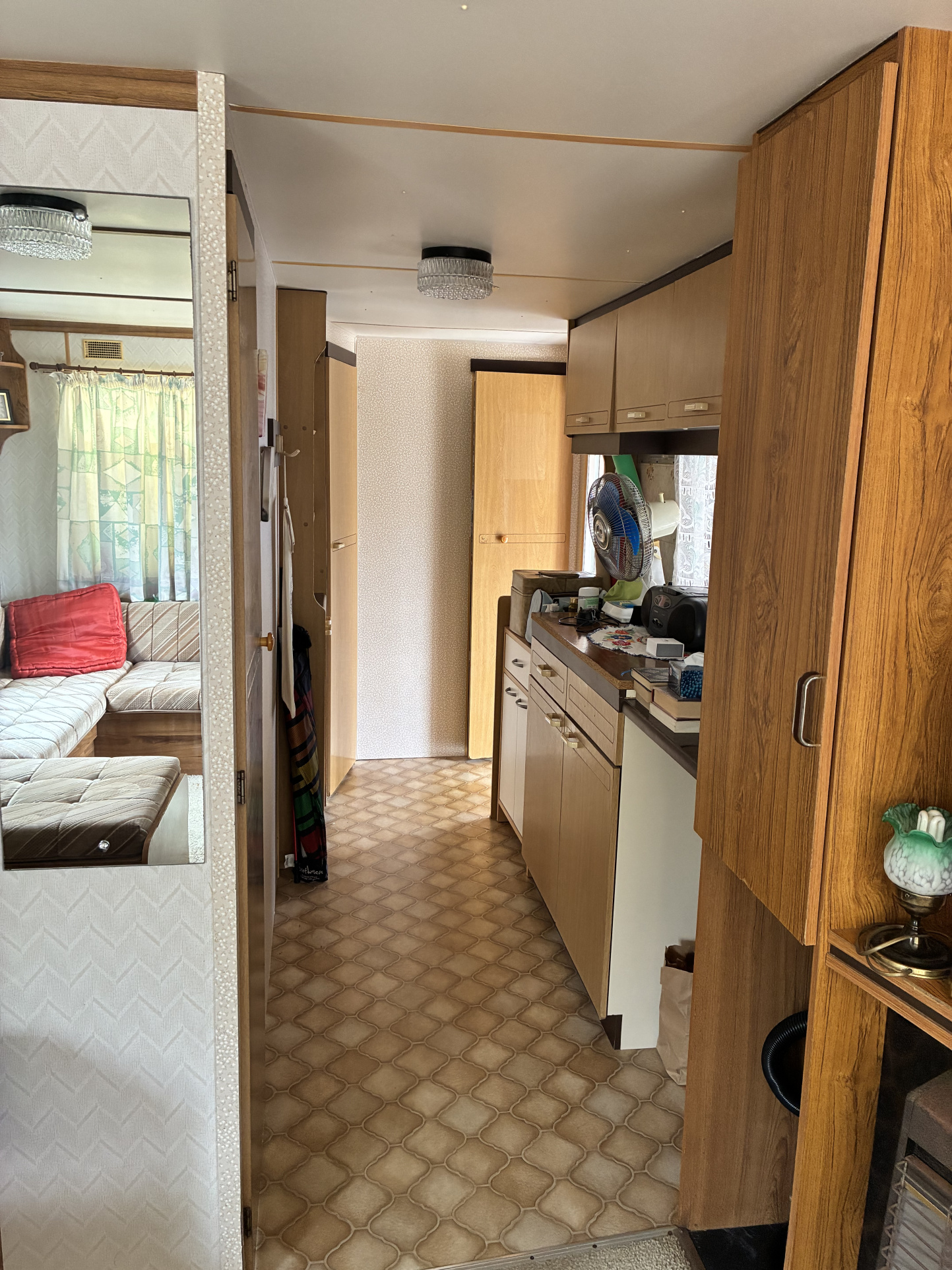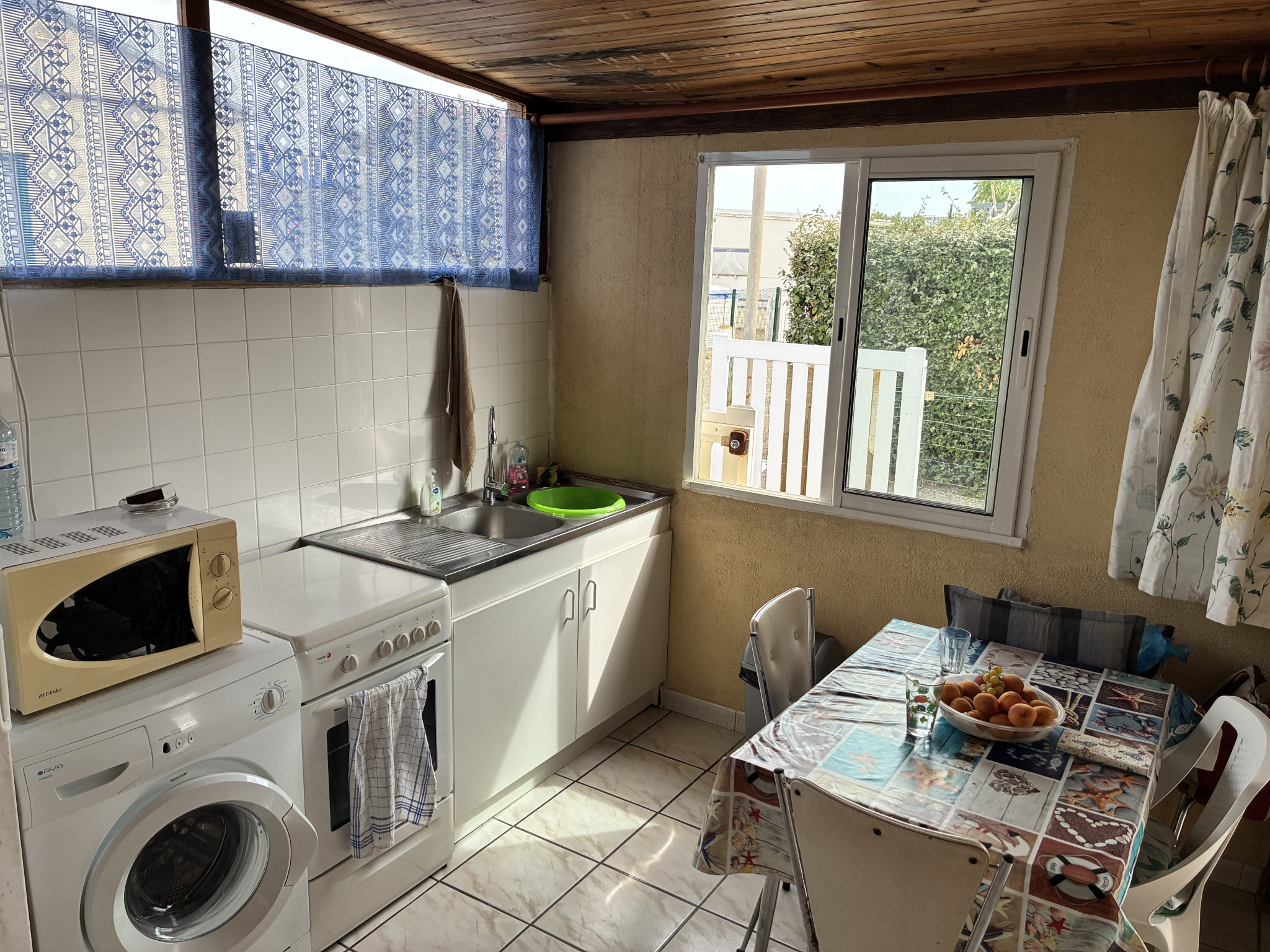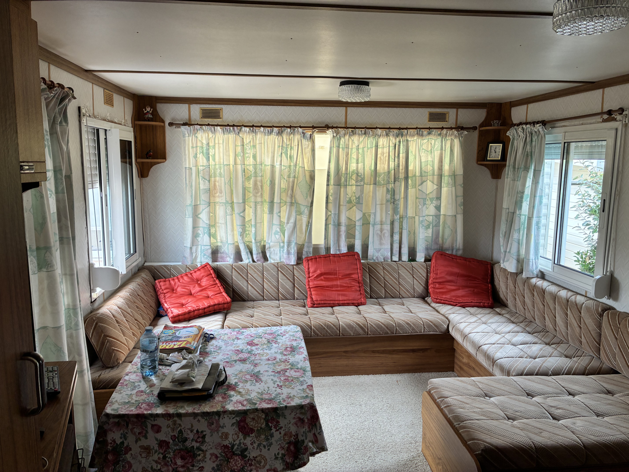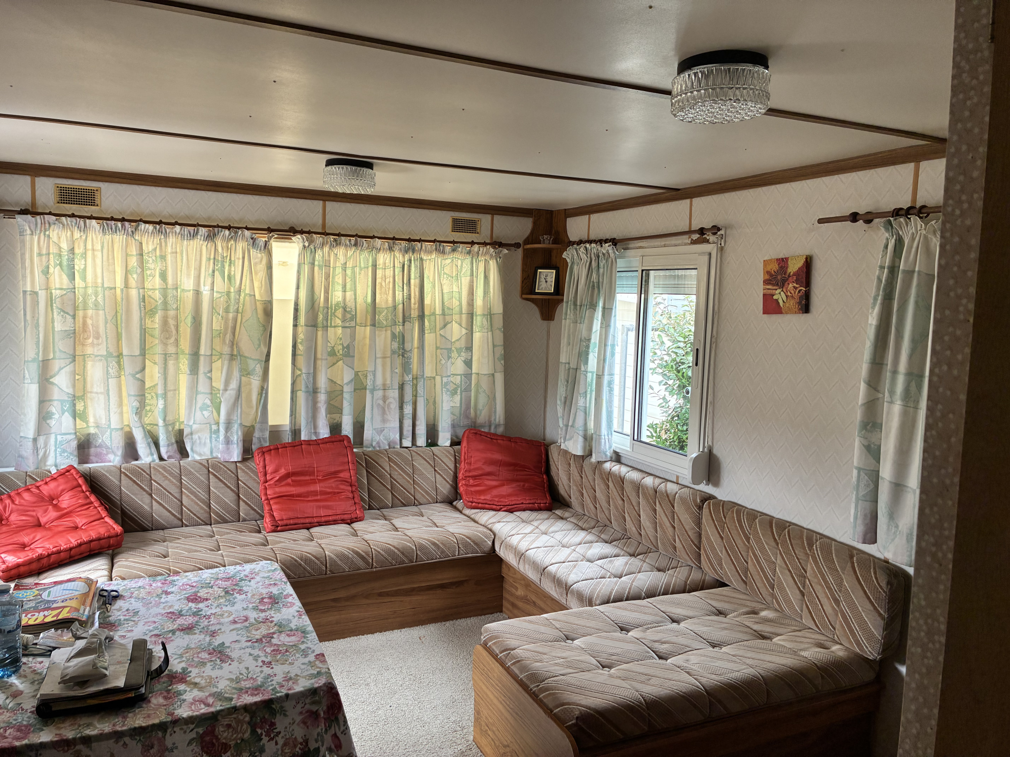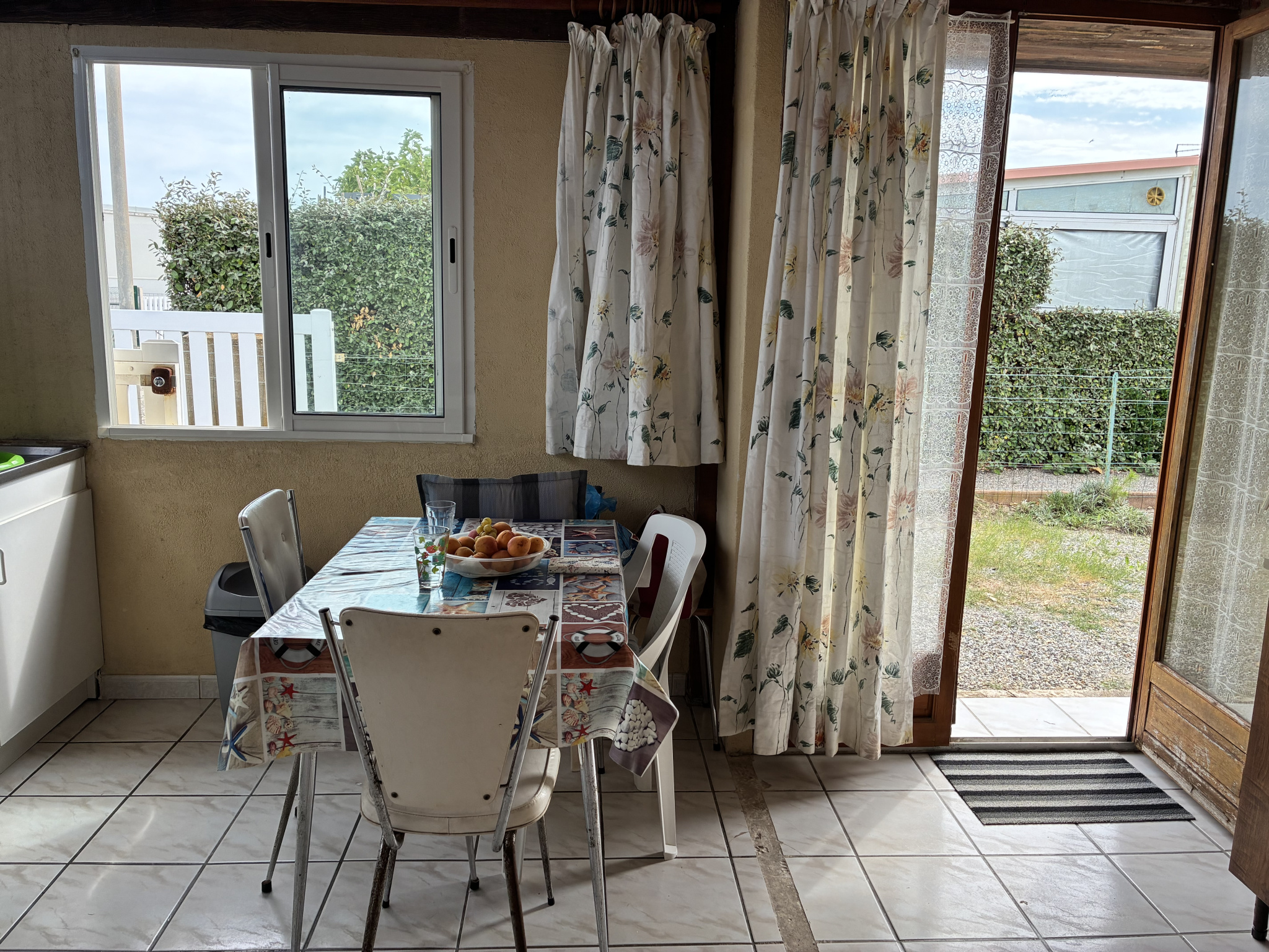 Le mobil-home se compose d'une cuisine aménagée, un salon avec canapé banquette, 2 chambres, sde avec wc.