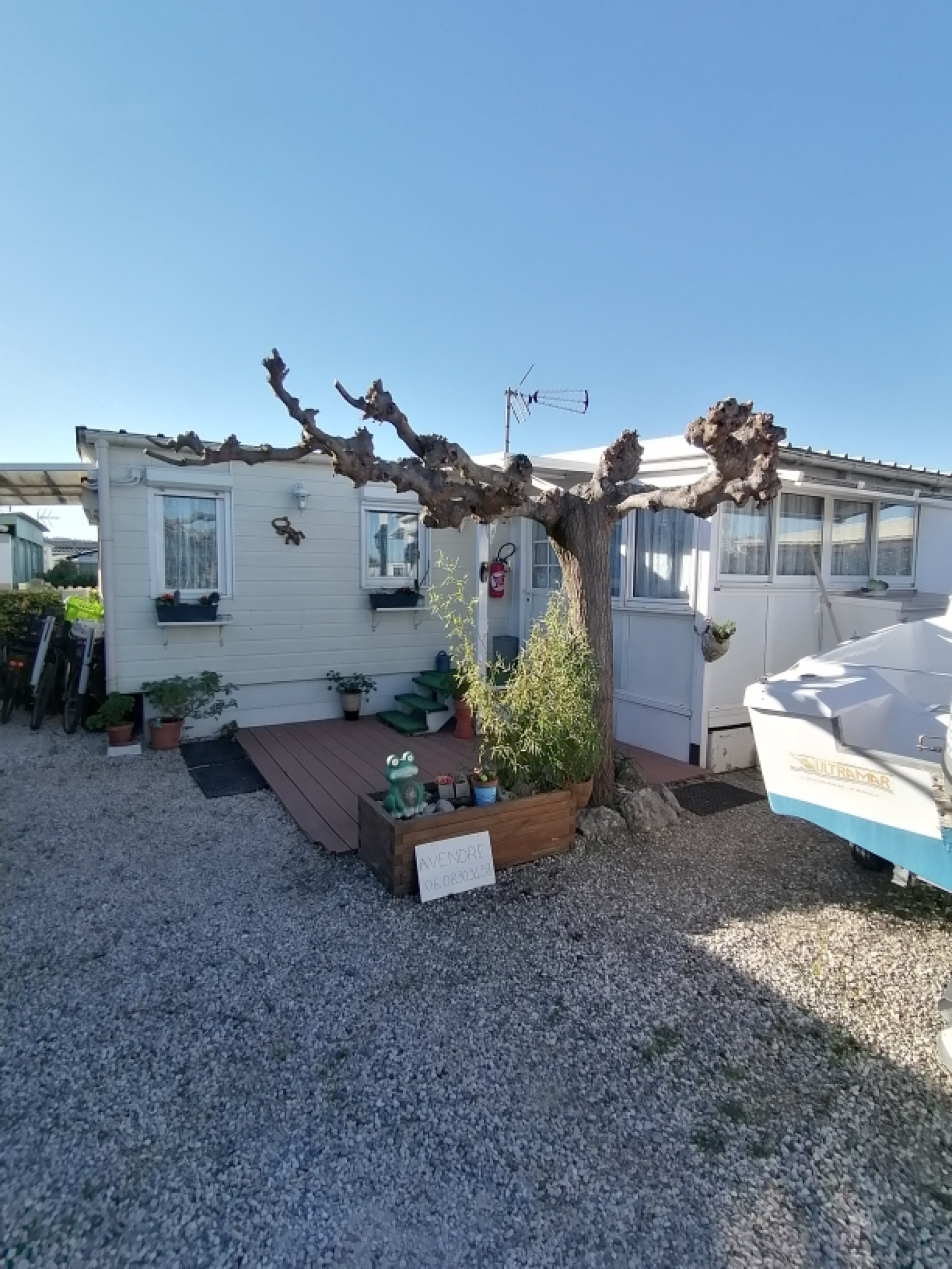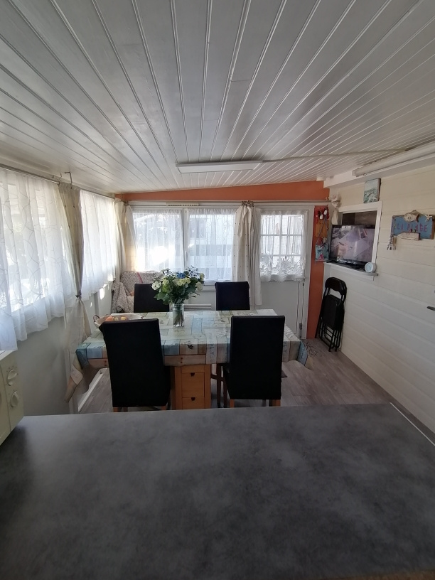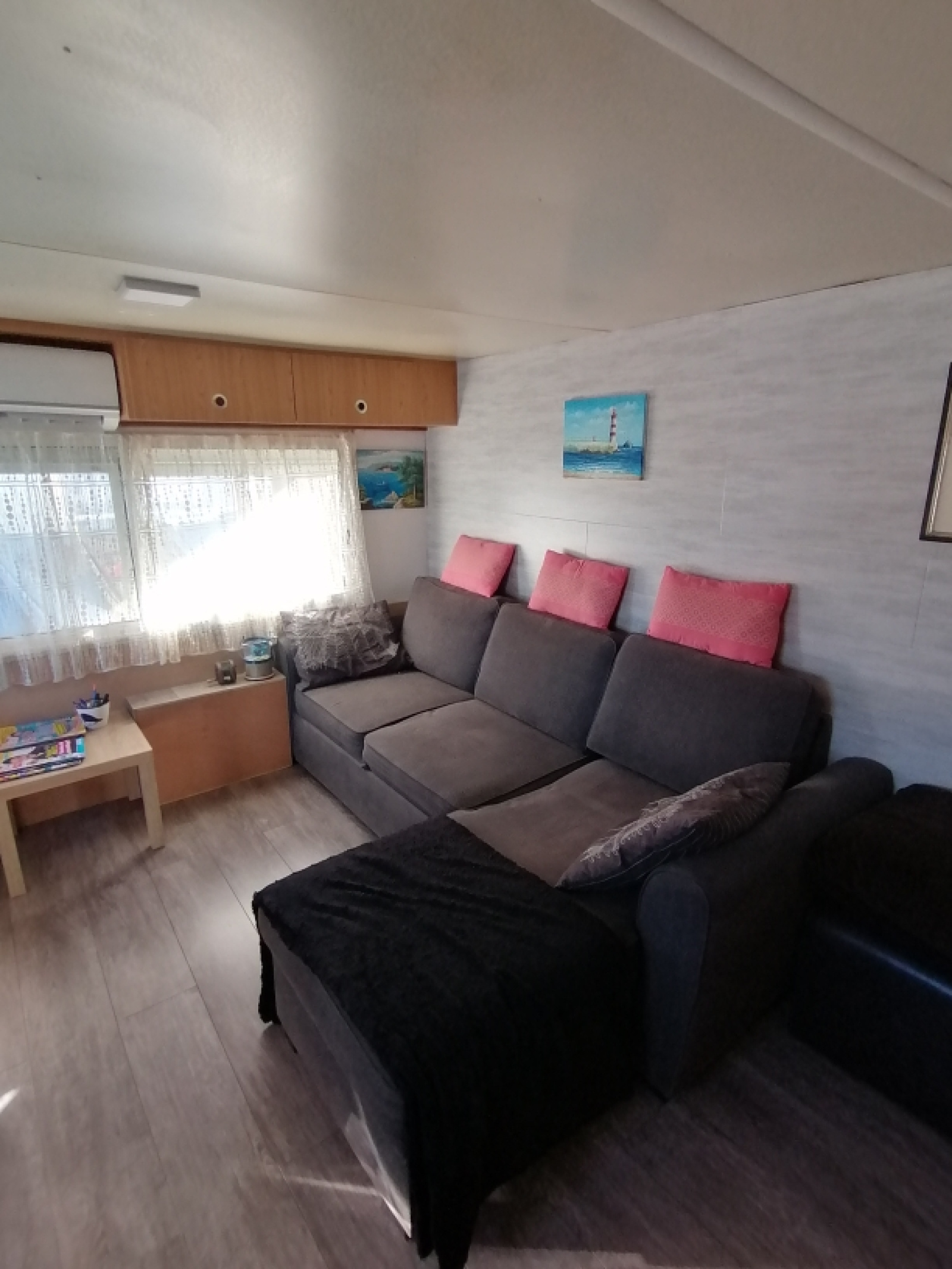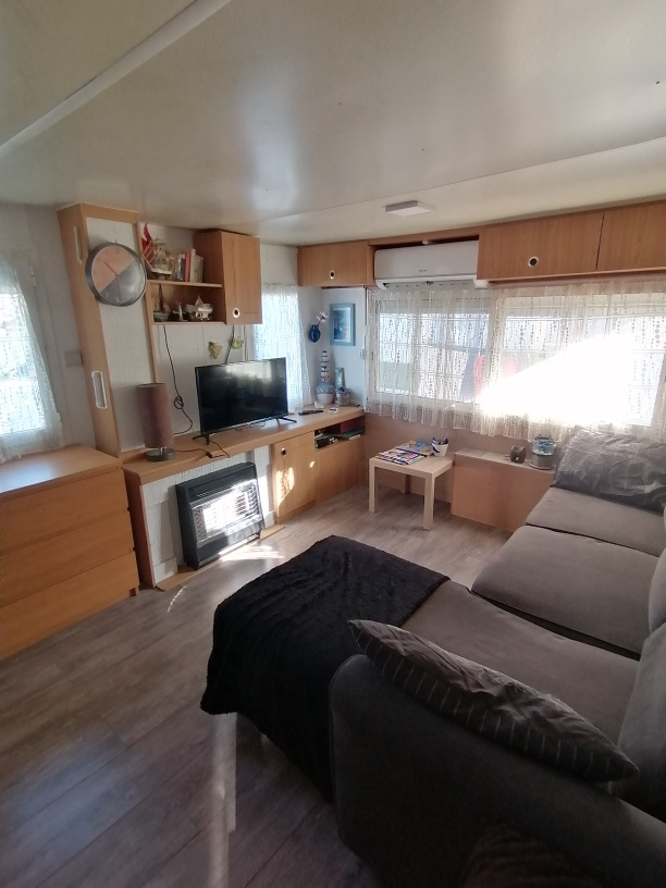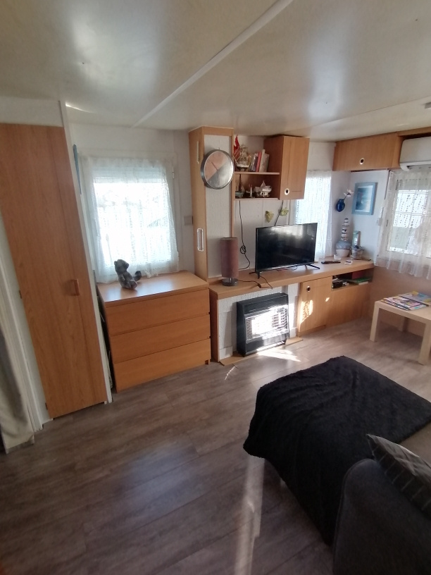 Le mobil home, refait à neuf, est d'une surface habitable de 27 m2 avec une avancée de 12 m2 et se compose d'un séjour, d'une chambre, d'une cuisine entièrement équipée, d'une salle d'eau avec douche et vasque et d'un WC séparé. Il est équipé d'une climatisation réversible.