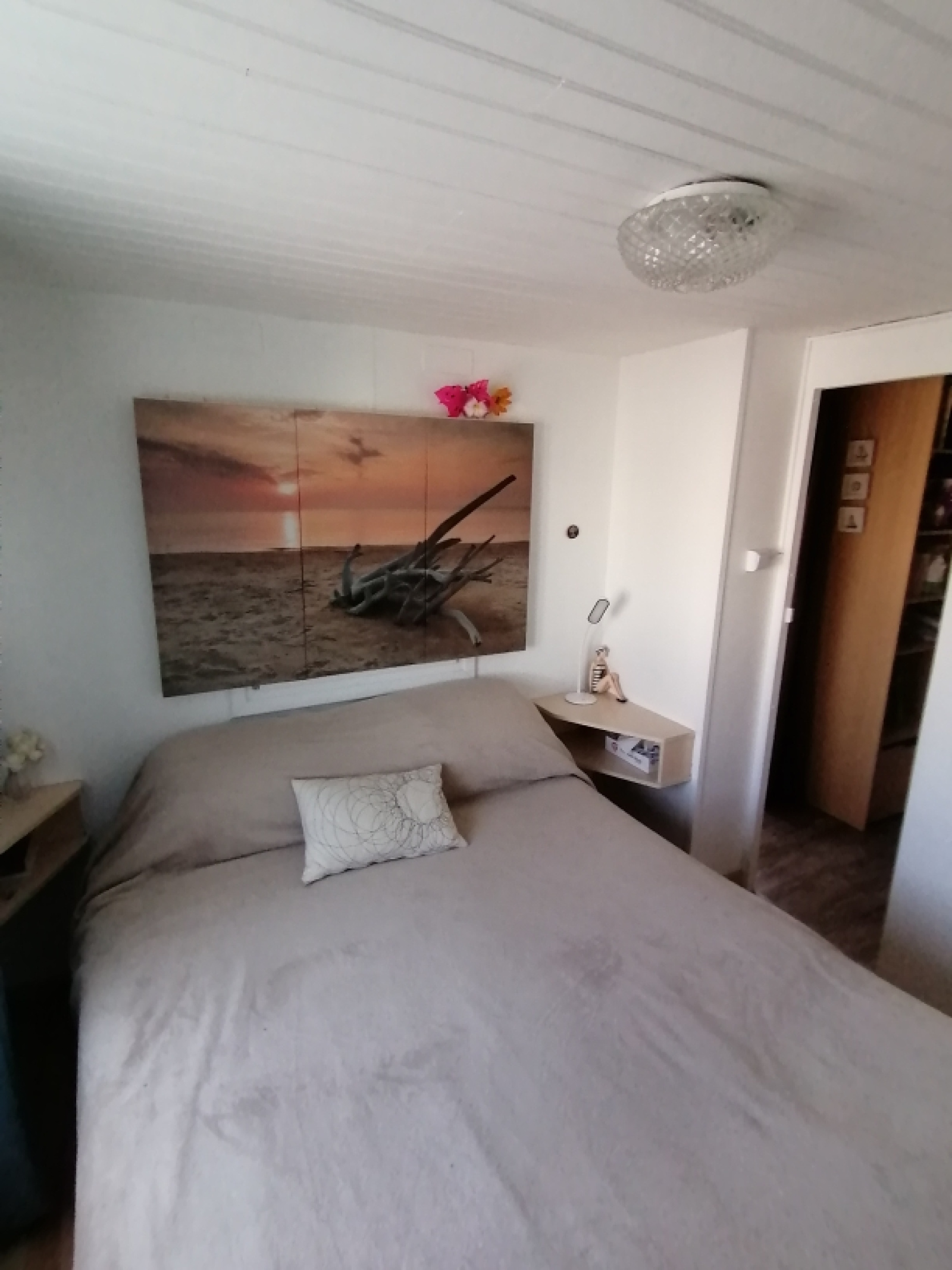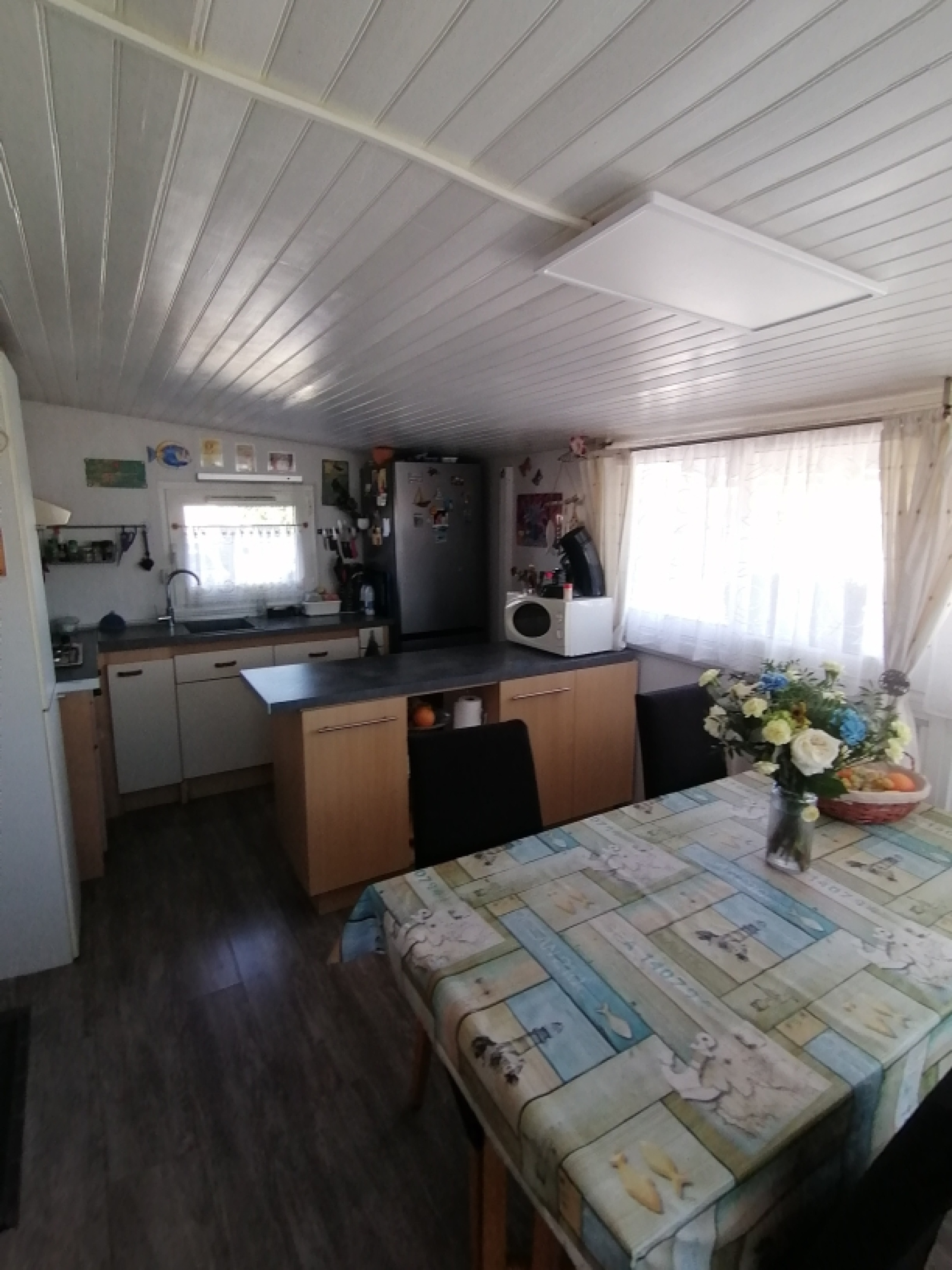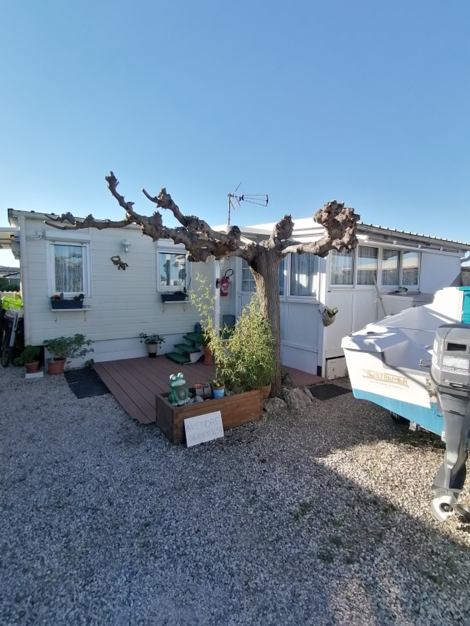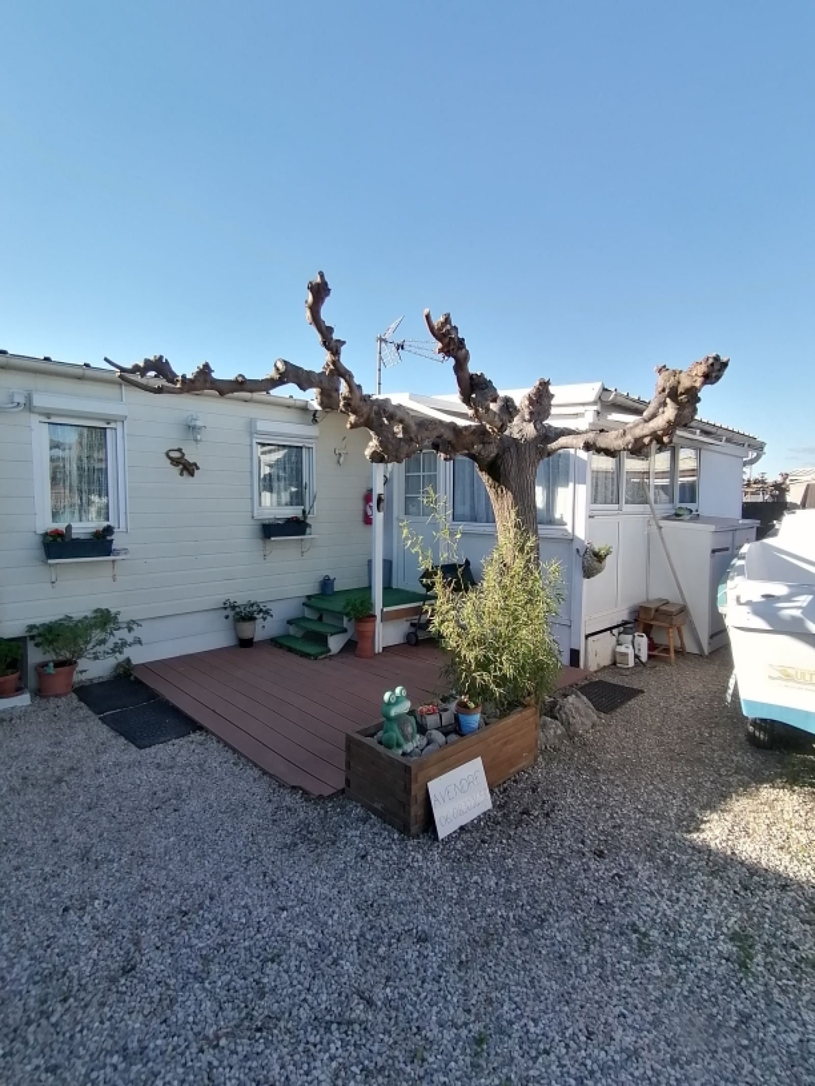 Le mobil home, refait à neuf, est d'une surface habitable de 27 m2 avec une avancée de 12 m2 et se compose d'un séjour, d'une chambre, d'une cuisine entièrement équipée, d'une salle d'eau avec douche et vasque et d'un WC séparé. Il est équipé d'une climatisation réversible.