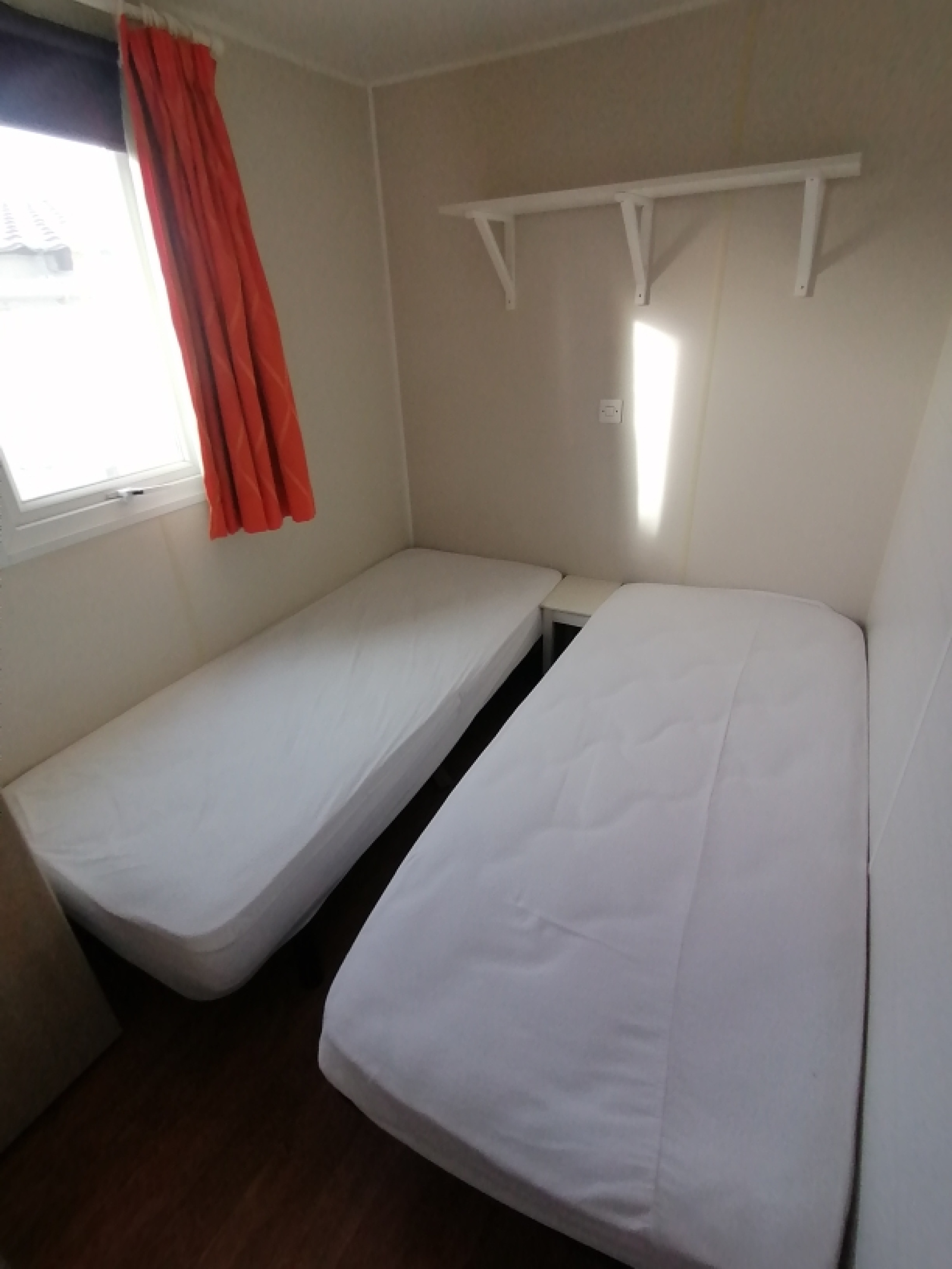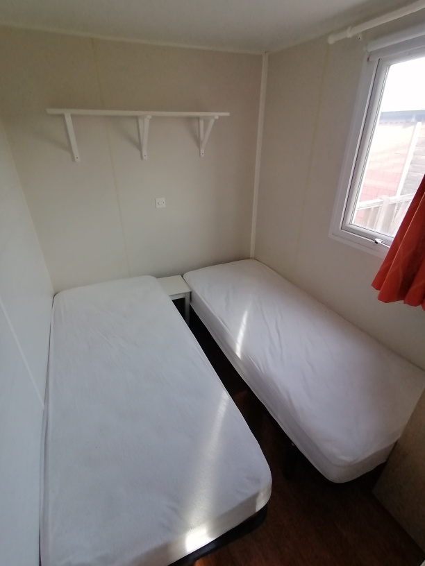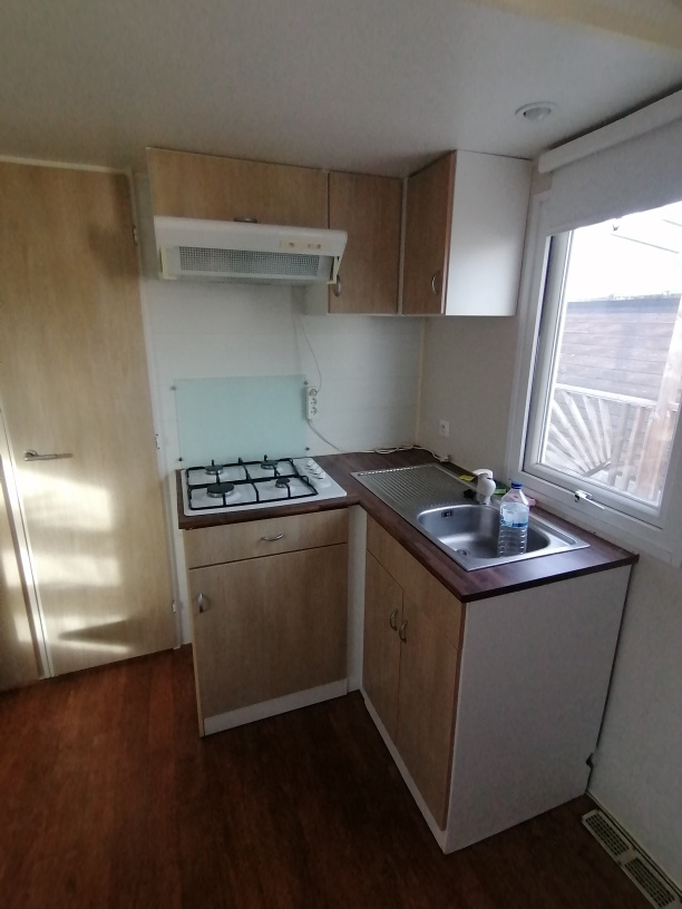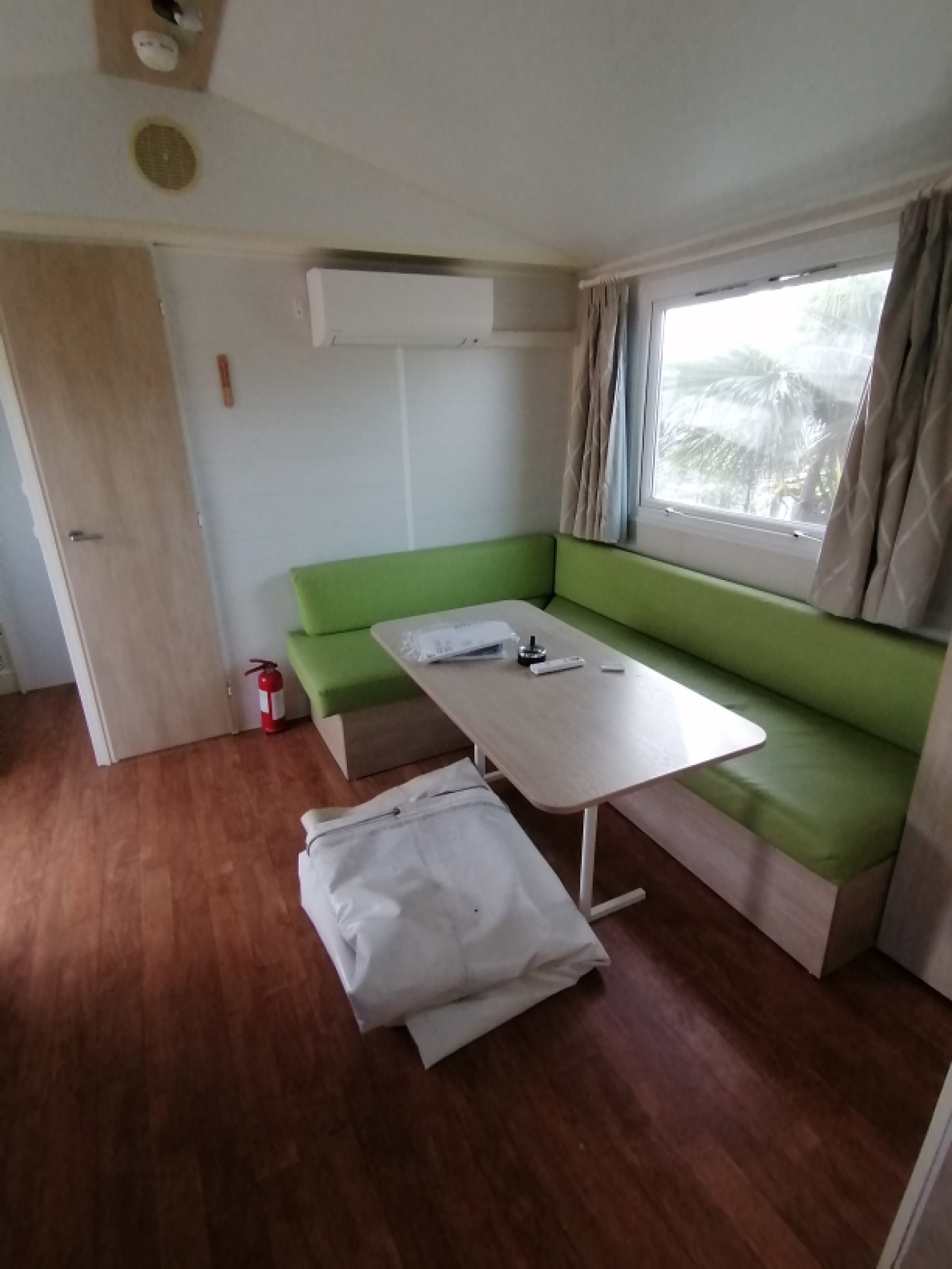 Le mobil home contient un séjour avec sa cuisine équipée, 3 chambres, une salle d'eau avec vasque et douche, un WC séparé. Possibilité de 8 couchages. Mobil home de marque O'Hara de 2015. Climatisation réversible neuve.